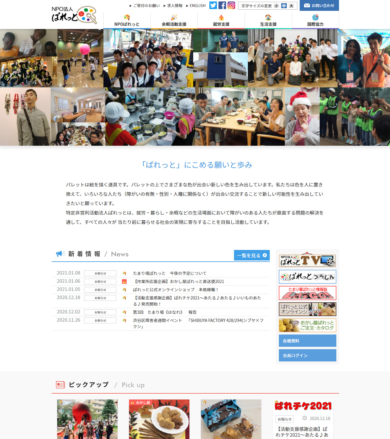 NPO法人ぱれっと様のWebサイトをリニューアル制作いたしました。